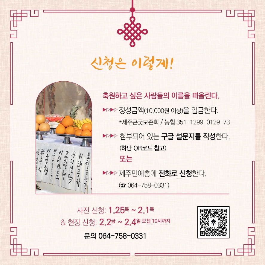 2. 정성금액(*10,000원 이상)을 입금한다. (제주큰굿보존회 / 농협 351-1299-0129-73)