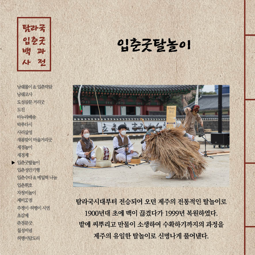 전세계 어디에서도 만나본 적 없는 전무후무하고 유일무이한 “탐라국 입춘굿 백과사전”