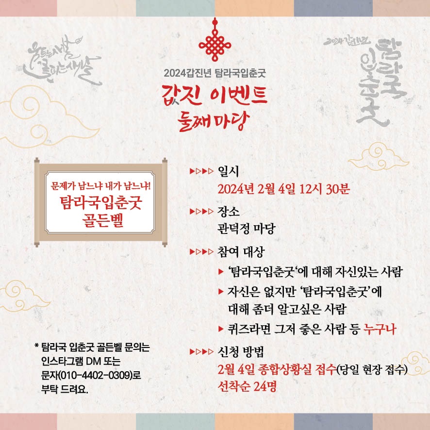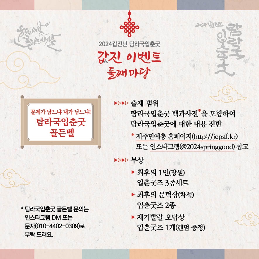 *탐라국 입춘굿 골든벨 문의는 dm 또는 문자(010-4402-0309)로 부탁 드립니다.