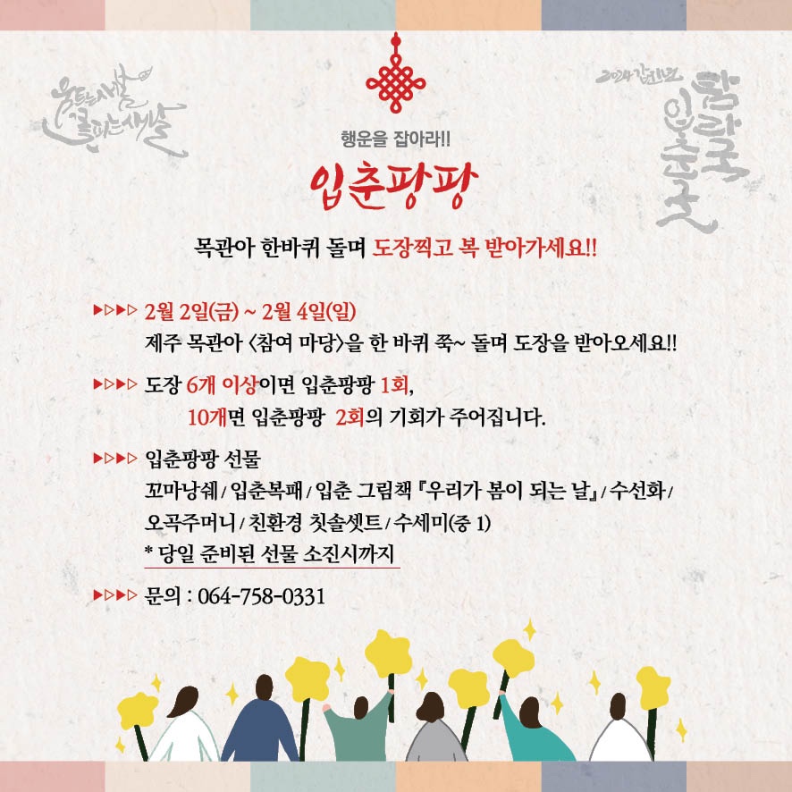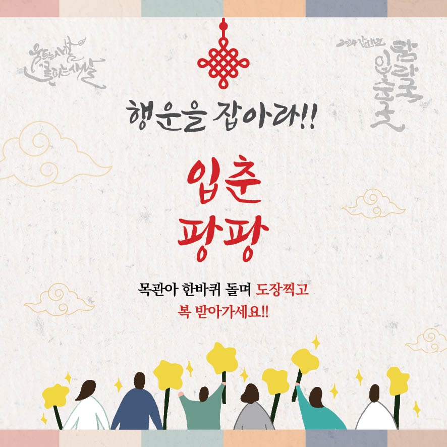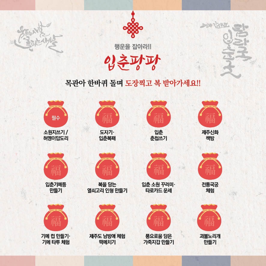 02.02(금)~02.04(일)동안 운영하는 체험마당(+ 입춘장터 일부) 체험자분들에게 도장을 찍어드립니다.